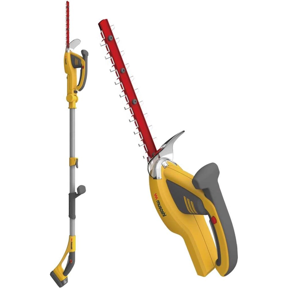 Новинка в ассортименте садовой техники от японского бренда Musashi на российском рынке: Аккумуляторный съемный триммер, кусторез, сучкорез, высоторез и секатор — инструмент 5-в-1 для ухода за деревьями, живыми изгородями, кустарниками и травой. Как всегда, торговая марка Musashi представляет уникальный для своего сегмента инструмент с премиальными качеством материалов, сборки и конструкции.Основные преимущества:Съемная конструкция: Кусторез + заменяемое лезвие + удлинительная ручка.Регулировка угла работы.Один инструмент сочетает в себе функции триммера, кустореза, сучкореза, высотореза и секатора, что делает его идеальным для комплексного ухода за садом.Отсутствие проводов обеспечивает свободу движений и облегчает доступ к труднодоступным местам. Аккумуляторные блоки подходят для других аккумуляторных инструментов Musashi (например, пила PCS-6001).Регулируемая ручка-штанга может быть настроена от 1,45 до 1,8 метра, что позволяет работать с растительностью на разной высоте без использования стремянок и лестниц.Удобные рукоятки и сбалансированный вес способствуют комфортной и эффективной работе, снижая усталость.Вес (с аккумулятором) составляет всего 1,6кг или 2,5кг вместе с удлинительной ручкой.Острые 3х сторонние лезвия и мощный мотор обеспечивают качественную и быструю стрижку и обрезку растений.Как всегда, аккумуляторный инструмент Musashi станет незаменимым помощником для любого садовода, обеспечивая уход за участком на профессиональном уровне и экономя время и усилия.