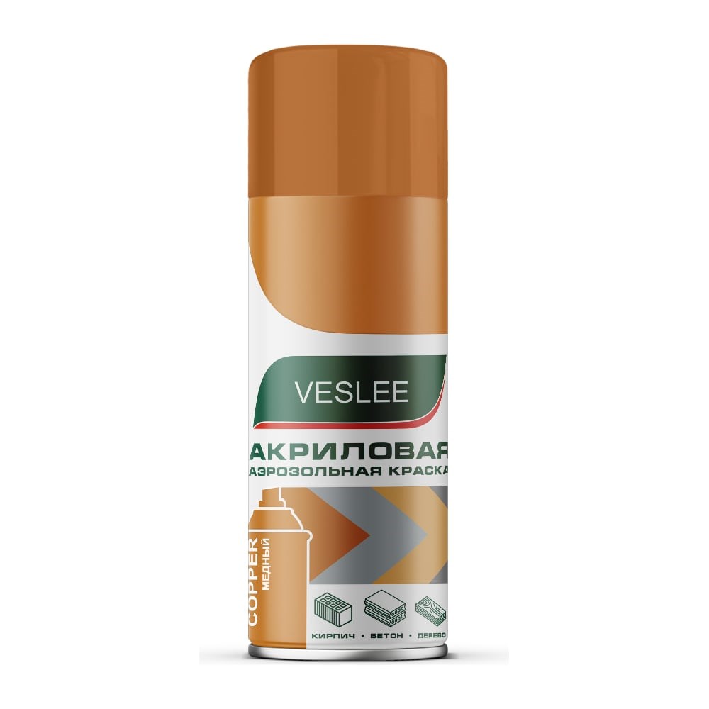 Акриловая аэрозольная краска Veslee медный, металлик VICP предназначена для высококачественного окрашивания деревянных, металлических, пластиковых, каменных, бетонных, керамических и др. поверхностей. Служит для обработки различного оборудования, приборов, мебели, оконных рам, дверей, дверных ручек, элементов сантехники, инструментов, предметов декора, изделий ручной работы, автомобилей, мотоциклов и прочего.Благодаря составу, цвет покрытия не желтеет и не выцветает. Средство обладает стойкостью к вредным факторам окружающей среды (покрытие не растрескивается от перепада температуры), поэтому может применяться для внутренних и наружных работ. Аэрозольная краска на акрило-эпоксидной основе, не содержит свинца и ртути, безопасна для окружающей среды.Покрытие надежно защищает поверхности от окисления и ржавчины, пригодна как для полного окрашивания поверхностей, так и для частичного.