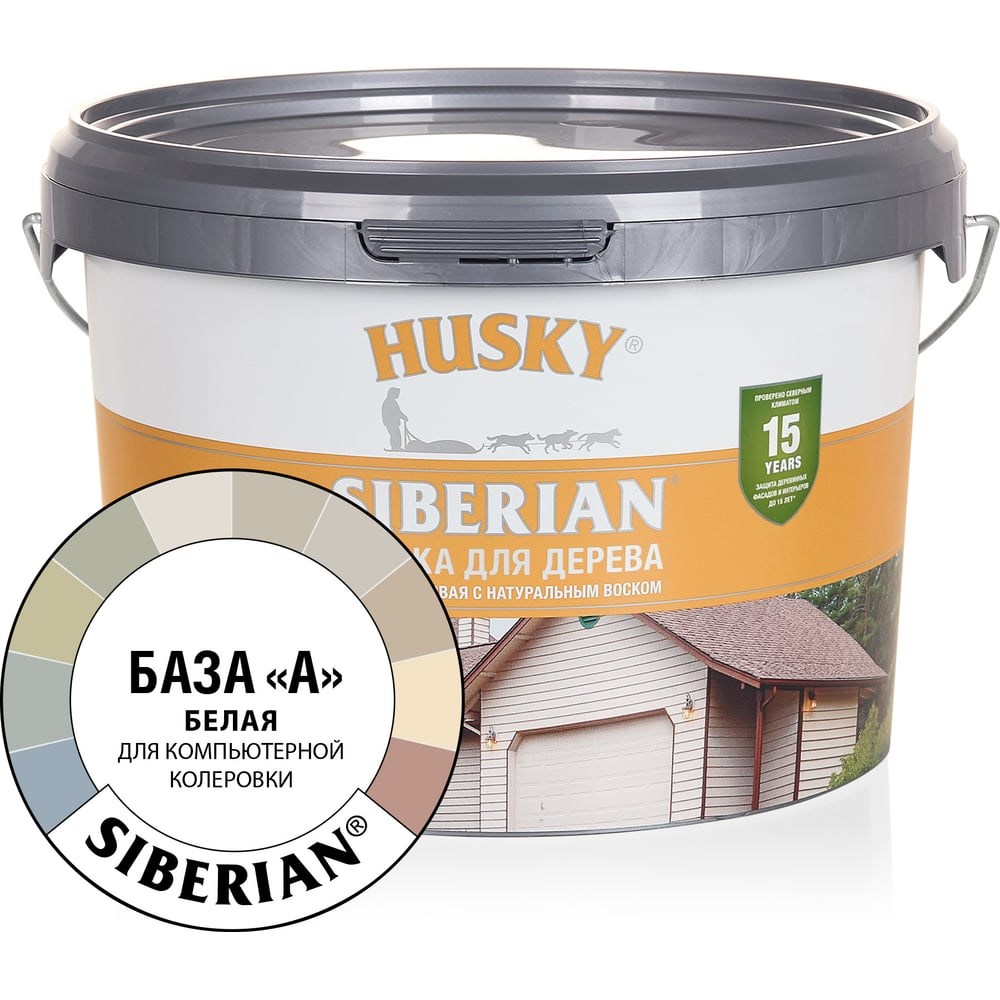 Краска для дерева HUSKY SIBERIAN 2,7 л База А 28047 - полуматовая экологичная быстросохнущая краска на основе 100% акриловой смолы с натуральным воском. Предназначена для окрашивания новых и ранее обработанных деревянных поверхностей: фасадов, окон, дверей, перил и т.д. внутри и снаружи помещений.
