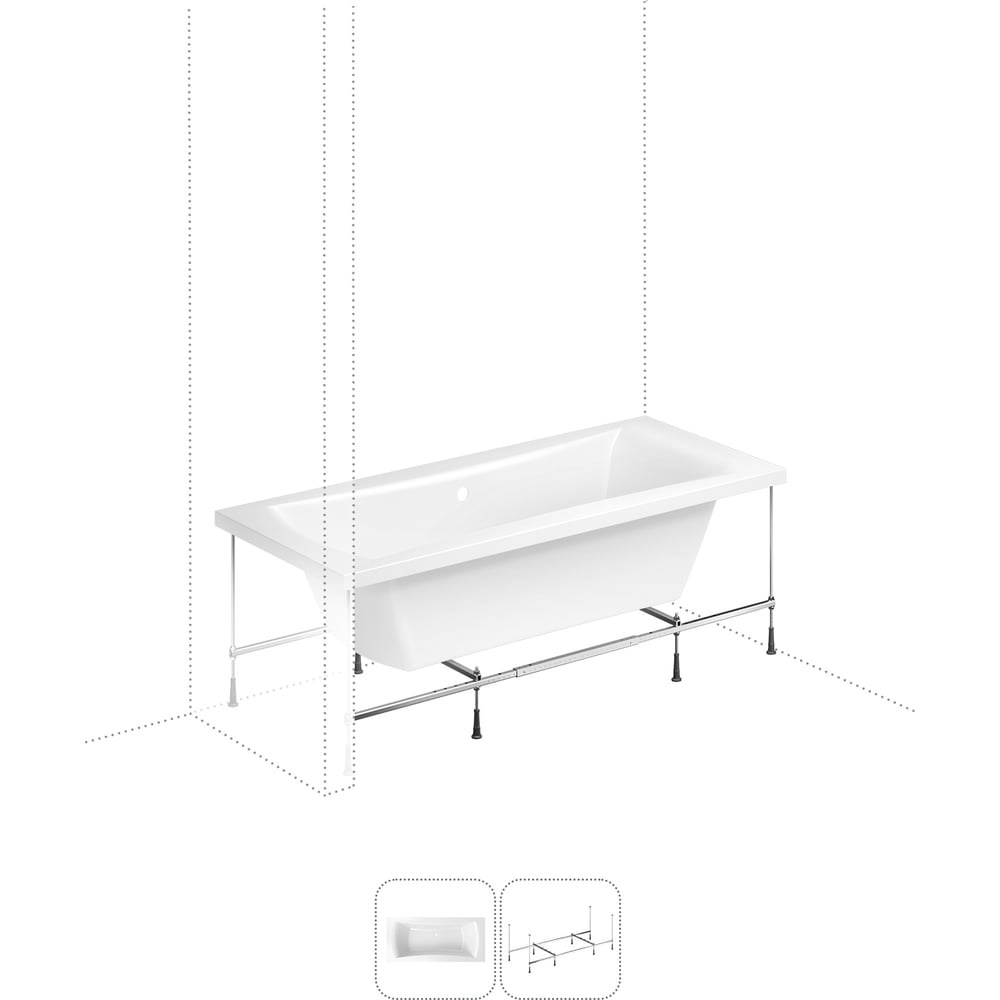 Прямоугольная ванна Evan производится в классических размерах 17075, 18080 см и в увеличенных XL-размерах: 19090 и 20090 см. Просторная купель, удобные пологие спинки и смещенный в центр ванны слив позволяют максимально комфортно расположиться и принимать водные процедуры вдвоем. Широкие торцевые бортики ванны позволяют с легкостью разместить часто используемые предметы гигиены. Армированные стенки и дно ванны способны выдержать значительную нагрузку, что подтверждено в ходе многочисленных испытаний. Основа ванн из литьевого акрила — жесткий 4 мм лист полиметилметакрилата (ПММА), который помещают в вакуум-формовочное оборудование и под большим давлением заполняют матрицу будущей ванны. Для максимальной прочности конструкции по всему основанию купели закладывается усиленная плита ДСтП, а внешняя сторона покрывается смесью полимера с отвердителем и ровингом. После отверждения в ванне высверливают отверстия для слива-перелива. Конструкция ванны предполагает установку на поперечные ножки или усиленный металлический каркас с максимальной нагрузкой до 500 кг и предусматривает дополнительную фиксацию к стене. Наличие регулировок на каждой ножке и распорках обеспечивает удобство установки на различных поверхностях.