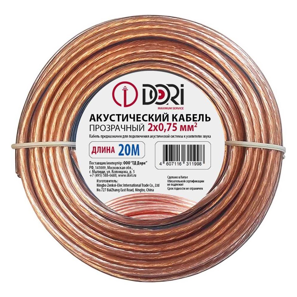 Кабель акустический DORI 2х0,75, прозрачный, 20 мПрочный акустический кабель DORI 2х0,75 с прозрачной оболочкой, идеальное решение для соединения аудиотехники с качественным звучанием.