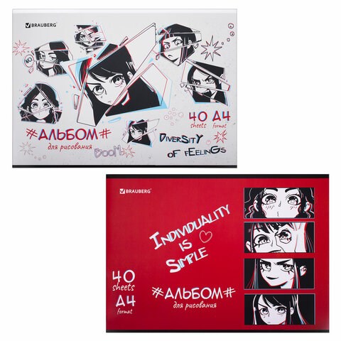 Альбом для рисования А4 40 л., скоба, обложка картон, BRAUBERG, 203х288 мм, "Аниме" (2 вида), 106703