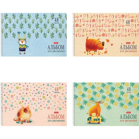 Альбом для рисования А4 48 л., спираль, обложка картон, HATBER, 205х290 мм, "Счастливчики" (4 вида), 067355, 48А4Всп