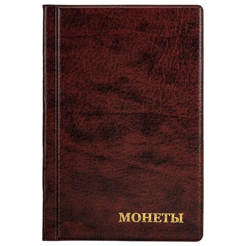 Альбом нумизмата для 240 монет, 125х185 мм, ПВХ, коричневый, STAFF, 238080