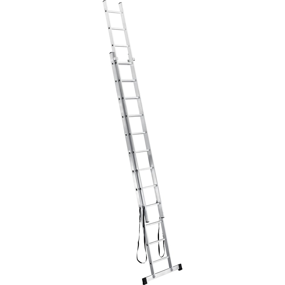 Алюминиевая 2-секционная лестница UFUK 2х12 ступеней 411212 предназначена для выполнения строительных, ремонтных, отделочных или иных видов работ, когда необходимо произвести какие-либо действия на высоте. Изготовлена из алюминиевого сплава и обладает достаточной прочностью. Имеет широкие алюминиевые скобы, обеспечивающие плотный зажим выносной секции и прочные страховочные стяжки, предохраняющие лестницу от самопроизвольного раскладывания.