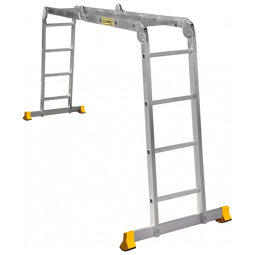 Лестница шарнирная алюминиевая четырехсекционная профессиональная– представляет собой лестницу-трансформер, состоящую из четырех секций,последовательно соединенных между собой стальными шарнирами. Шарнины имеют три угла фиксации,которые обеспечивают лестнице положения: -приставная, -стремянка, -приставная под крышу, -помост только для Т433, Т444(исключительно с штатной площадкой.В комплект не входит).Тетивы, ступени и стабилизатор лестницы изготовлены из высокопрочного алюминиевого сплава(ГОСТ 22233-2018), обеспечивающего изделию прочность и легкость, что важно для транспортировки и установки. Ступени выполнены с рифлением,что способствует безопасному подъёму и спуску.Идеальный помощник на производстве, в офисе, в быту, на даче или гараже.Лестницу можно использовать вне помещения.Конструкция стойкая к воздействию неблагоприятных погодных условий благодаря коррозионностойким свойствам алюминия. Этот фактор является одним из главных преимуществ модели.Особенности лестницы: широкий профиль,усиленные шарниры,два стабилизатора.Данная линейка лестниц подходит для строительства и ремонта на профессиональном уровне,а также для выполнения бытовых работ.!Доукомплектовать лестницу можно: шарнирами HВВ10-16, стабилизатором STB, комплектом заглушек для стабилизатора ZGS!Завод – изготовитель оставляет за собой право в одностороннем порядке вносить изменения в конструкцию, в целях улучшения технических характеристик.на линейные размеры отклонение может составлять +-5 мм, на вес изделия +-5%