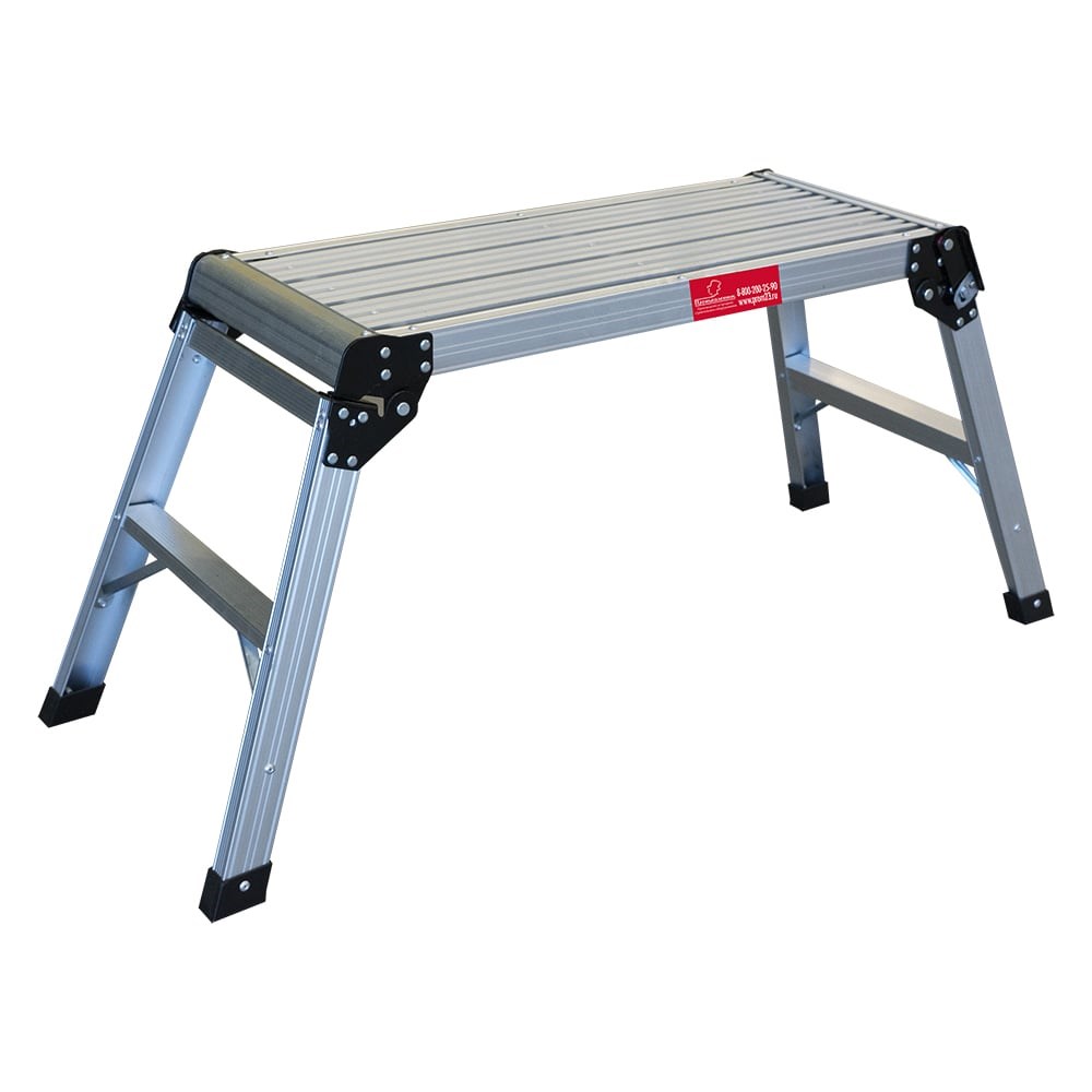 Алюминиевая рабочая платформа TeaM 69х30 см, Н=500 мм РПА63500 - приспособления для выполнения строительных работ на высоте. Надежность. Изготовлена из алюминия, благодаря чему отличается прочностью и небольшим весом. Рифленая поверхность платформы обеспечивает безопасность и предупреждает скольжение ноги при работе. Компактное хранение. Складная конструкция не занимает много места при хранении или транспортировке.
