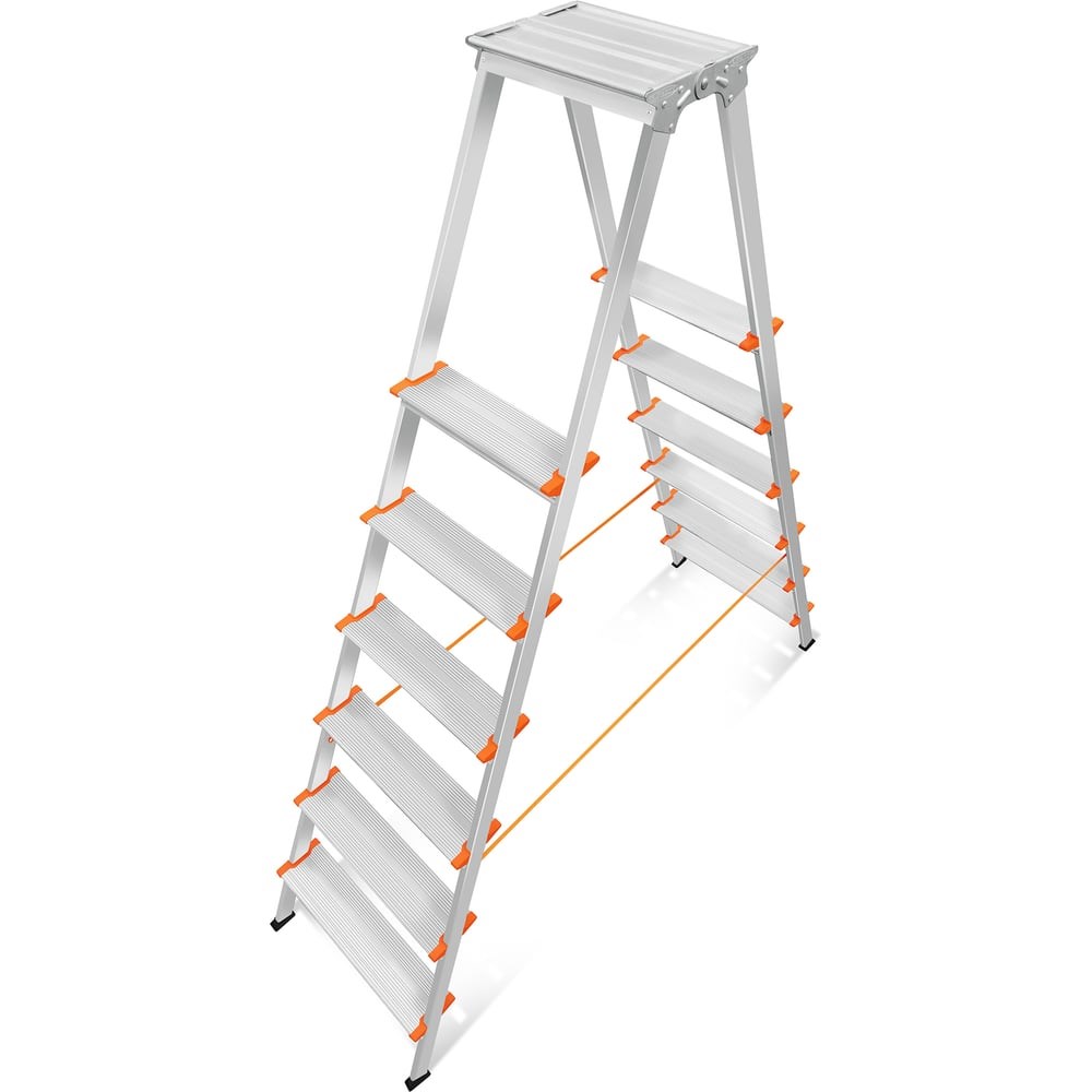 Алюминиевая cтремянка Эйфель Мастер 130 - 206 отличается широким диапазоном применения.Отличная коррозионная стойкость. Направляющие изготовлены из анодированного алюминия.Полимерные опоры с увеличенной площадью контакта устойчивы к истиранию и воздействию температур в диапазоне от -40 до +50 ˚С.Дополнительные характеристики:Высота полки: 600 мм;Максимальная высота подъема: 1680 мм;Высота подъема ступени: 280 мм.