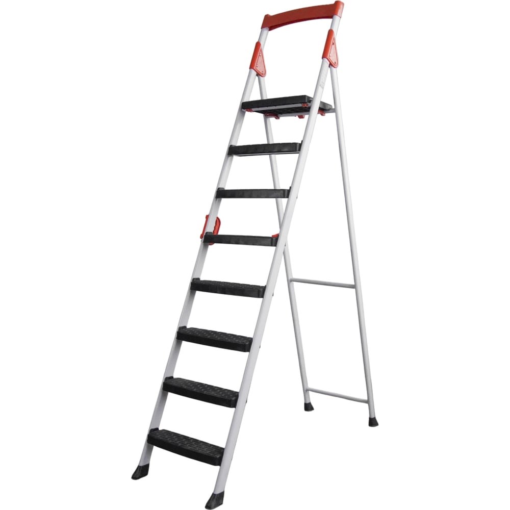 Стремянка с пластиковой ступенью Kanat Promax 8 ступеней (7+1) PPM-707 предназначена для различных работ на высоте. Конструкция из алюминия и пластика отличается высокой прочностью и устойчивостью к воздействию коррозии. Опорные наконечники из пластика защищают стремянку от скольжения и обеспечивают надежное сцепление с поверхностью. Компактное хранение. Складная конструкция не займет много места при хранении или транспортировке. Внимание! Количество ступеней отличается от представленного на фото.