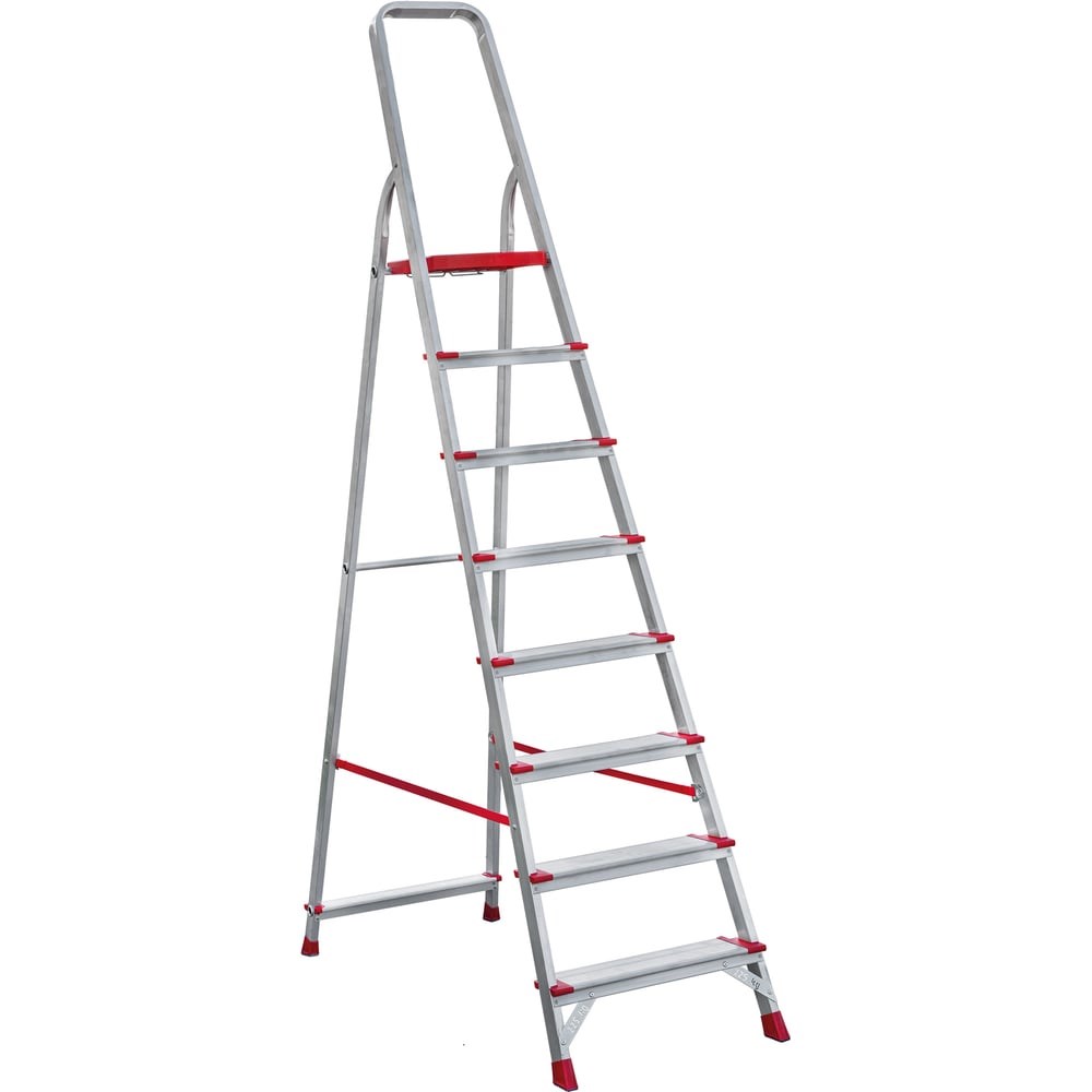 Стремянка Новая высота 8 ступеней с шириной 130 мм 5110108 отвечает требованиям безопасности, надежности и долговечности. Предусмотрены страховочные ремни и высокая дуга безопасности. Большая рифленая площадка из композитного материала обеспечивает комфортную работу и позволяет удобно разместить инвентарь. Лестница выдерживает нагрузку до 225 кг.