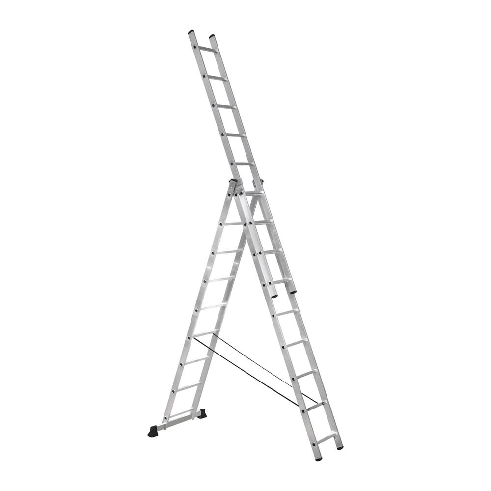Алюминиевая трехсекционная лестница-стремянка SevenBerg 3x9 920309 используется для любых бытовых высотных работ на стройке, огороде, в доме. Многофункциональная лестница. Может использоваться как стремянка или как приставная лестница Оснащена нижним стабилизатором длиной 70 см для максимальной устойчивости конструкции в виде стремянки. В сложенном состоянии лестница занимает мало места. Качественный профиль позволяет ей выдерживать нагрузку до 150 кг.