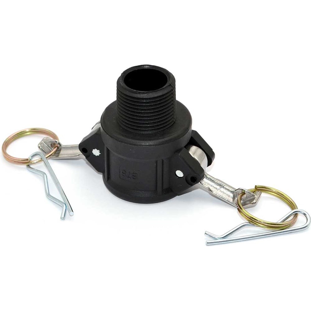 В: тип камлока - муфта с наружней резьбой и приёмной частью "мама" с фиксаторами кулачкового типа 075: условное обозначение диаметра камлока 3/4": внутренний диаметр трубы (условный проход трубы), обозначение размера резьбы в дюймах. Соответствует 20 мм. Вид резьбы: дюймовая трубная коническая R (BSPT) Материал уплотнения для стороны с приёмной частью "мама": кольцо прямоугольного сечения из силикона Материал корпуса: полипропилен, усиленный стекловолокном 25%. Устойчив к кислотам, щелочам, органическим соединениям, нефтепродуктам. Имеет превосходную механическую прочность, низкую температуру плавления и гладкую поверхность с высоким коэффициентом скольжения Материал кулачков: нержавеющая сталь или бронза Номинальное рабочее давление: 9 бар Рабочая температура уплотнения: от -35°C до +200°C Рабочая температура камлока: от -10°C до +65°C