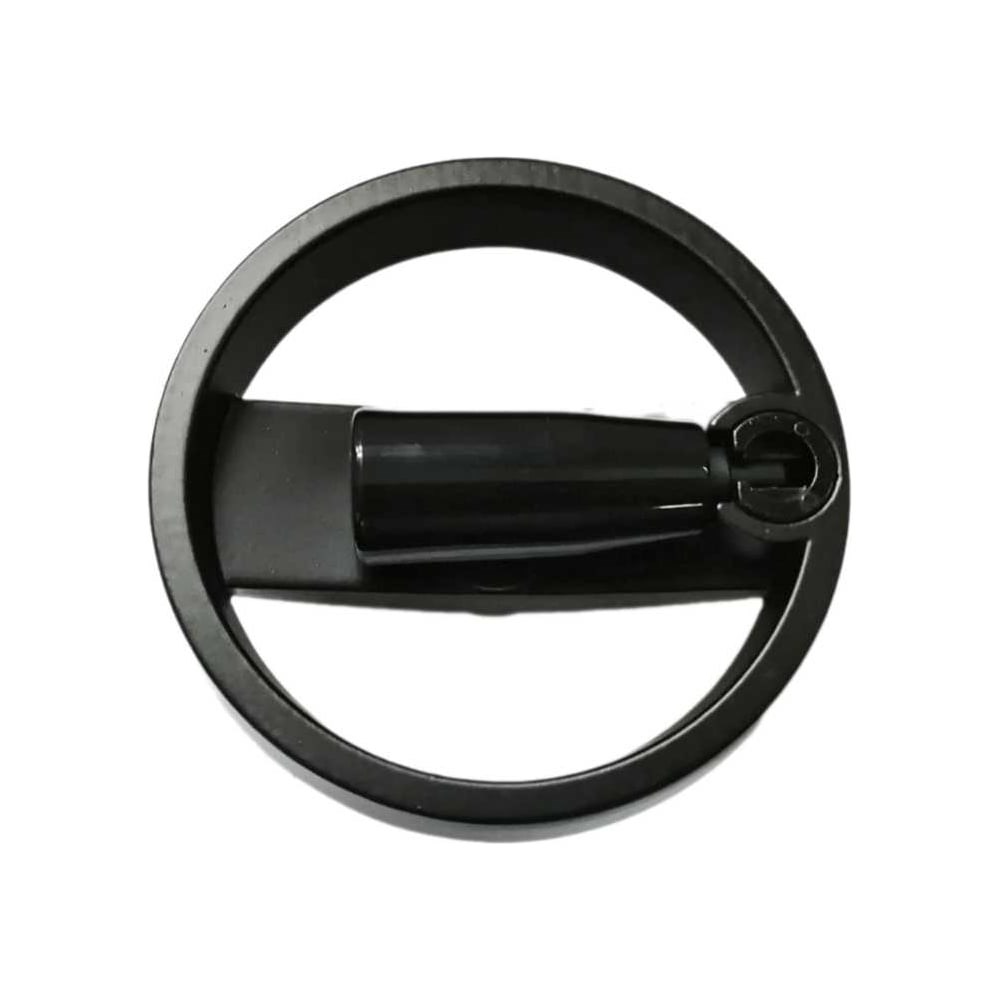 Легкий штурвал для управления подвижными механизмами. Обод на двух спицах и откидная ручка. Рукоятку можно сложить, чтобы обеспечить удобство и безопасность оператора.Посадочное отверстие под шпонку.ХарактеристикиТело: алюминий.Ручка вращающаяся: бакелит.Цвет: матовый черный.Поверхность штурвала для станка гладкая, приятная на ощупь не изнашиваемая. Маховик ручной привод устойчив к маслам и смазочным материалам, органическим растворителям и другим агрессивным средам. И может выдерживать высокую температуру.Диаметр маховика: 100 мм.Посадочный диаметр: 10 мм.Паз под шпонку: 3 мм.