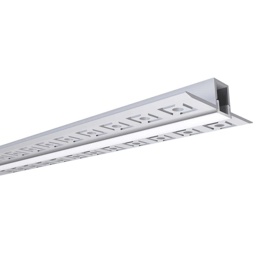 Алюминиевый профиль Apeyron для светодиодной ленты по своей конструкции является изделием, которое монтируется под штукатурку, благодаря чему источник свечения становится единым целым со стеной и выглядит как органичная часть интерьера.Данная модель имеет размер 53х13х2500 мм и внутри него можно разместить светодиодную ленту шириной до 9 мм.В профиль уже установлен рассеиватель белого цвета, изготовленный из светорассеивающего поликарбоната. Такой рассеиватель пропускает 70 % светового потока и делает его более мягким и приятным для ваших глаз, поэтому наиболее часто используется для решения задач по организации декоративного и основного освещения.Профиль имеет приятную матовую поверхность. Благодаря анодированию сохраняет благородный серебристый цвет, защищая профиль от окисления.Также в комплекте с профилем идут 2 заглушки.