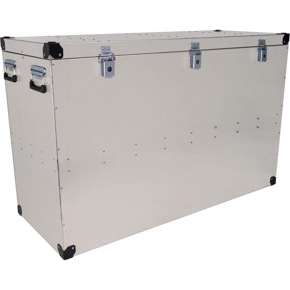 Алюминиевый ящик Олимп 1210х450х750 1214575 служит для размещения и транспортировки разнообразного ручного инструмента, а также расходных материалов. Внутренние планки выполняют роль ребер жесткости и успешно препятствуют деформации стенок под нагрузкой или при внешнем механическом воздействии. Для дополнительной защиты от повреждений на углах ящика закреплены специальные накладки. Рукояти существенно облегчают перемещение модели по рабочей площадке. Внутренние полезные габариты (ДхШхВ): 1210х450х750 мм Внешние габариты (ДхШхВ): 1255х495х785 мм Объём: 408.3 л Толщина стенок: 1,5 мм Грузоподъёмность: 200 кг Диапазон температур (°C): - 65 / + 90 Класс защиты (IP54) Гарантия: 5 лет Петля накладная 50Х60 мм - 3 шт Ручка откидная усиленная - 4 шт Замок-стяжка L90 - 3 шт Уголок-ножка (позволяет составлять ящики друг на друга) - 8 шт Ремни фиксации крышки - 2 шт Рёбра жёсткости на 4-х стенках, дне и крышке