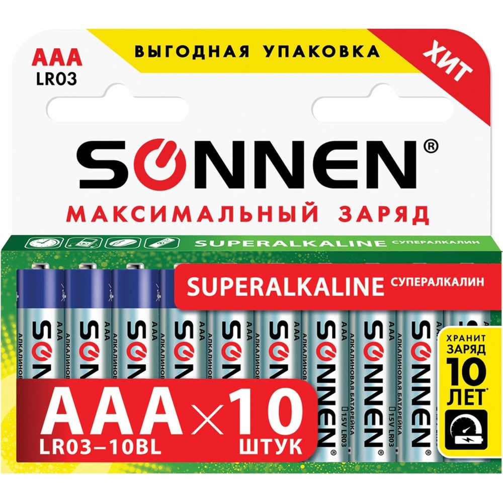 Супералкалиновые батарейки SONNEN популярного типоразмера AАA идеально подходят для приборов с высоким потреблением энергии. Рекомендуется использовать в фотоаппаратах, mp3-плеерах, микрофонах и радиоуправляемым игрушкам. Универсальный типоразмер AАA (мизинчиковые) - один из самых востребованных видов батареек. Батарейка имеет номинальное напряжение 1,5 В. Супералкалиновые (щелочные) батарейки рассчитаны на длительные часы работы и адаптируются к перепадам температуры, высоким нагрузкам и разряжаются равномерно, нет резкого падения мощности при потере заряда. В упаковке 10 штук, такого оптимального запаса хватит на очень долгое время.