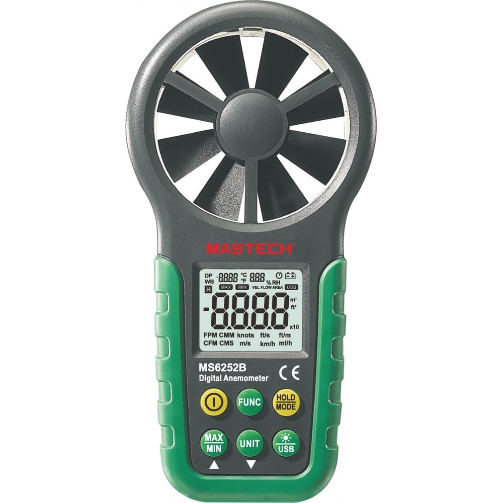 Анемометр с крыльчаткой Mastech MS6252B 00-00000226 разработан для измерения скорости ветра и объема воздуха, температуры окружающей среды, влажности, температуры точки росы. Отображает минимальные и максимальные значения. Прибор можно использовать как для измерений вручную, так и с установкой на штатив. Функция удержания показаний облегчает работу в труднодоступных местах. На экране отображается индикатор низкого заряда батареек. Предусмотрена возможность подключения к ПК через кабель USB.