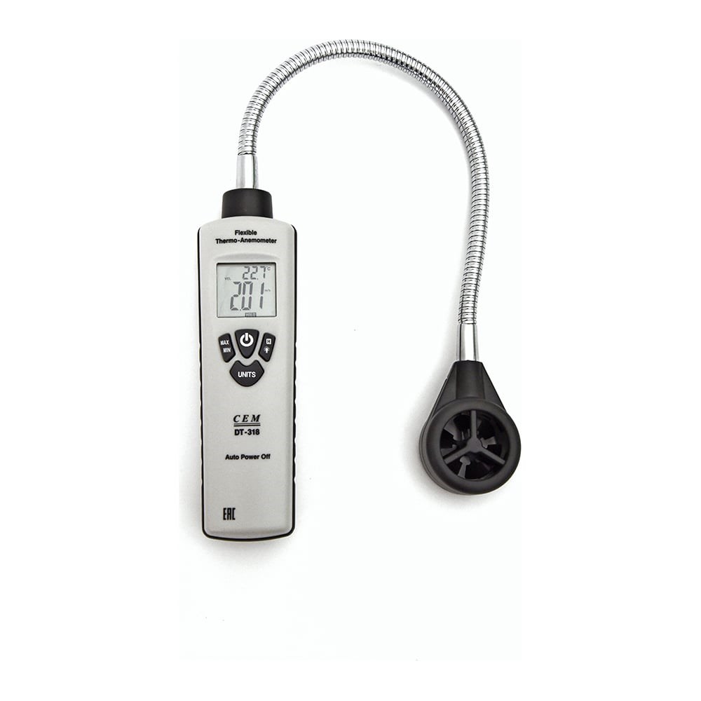 Анемометр с гибким зондом СЕМ DT-318 481752 используется для замера скорости и температуры воздушного потока. Четырехзначный экран позволяет получать показания измерений как в м/с, так и в фут/мин, км/ч, а так же в узлах. Встроенный термистор гарантирует высокую точность измерения температуры с погрешностью не более 1.5 градуса. Есть режим фиксации полученных данных. О низком разряде батареи пользователя оповещает специальный индикатор.