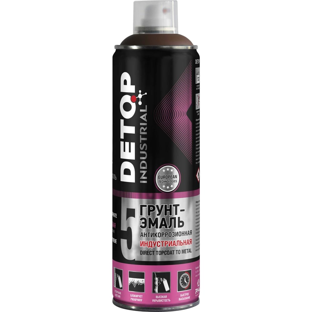 Грунт-эмаль DETOP антикоррозионная, шоколадно-коричневый, RAL 8017, аэрозоль 650 мл DTI-A07736 выполняет функцию антикоррозионного грунта и декоративной эмали. Основа на гибридной смоле, фосфат цинка и светостойкие пигменты создают долговечное стойкое к атмосферным воздействиям защитно-декоративное антикоррозионное покрытие, обладающее высокой прочностью и устойчивостью к воздействию воды, минеральных масел и дизельного топлива.Грунт-эмаль применяется для покраски металлических конструкций промышленного назначения, сельскохозяйственной, коммунально-бытовой и дорожно-строительной техники, технологического оборудования, гаражей, кованых металлических изделий и строительных металлоконструкций.Внимание! Фото может отличаться от товара, при выборе ориентируйтесь на технические характеристики.