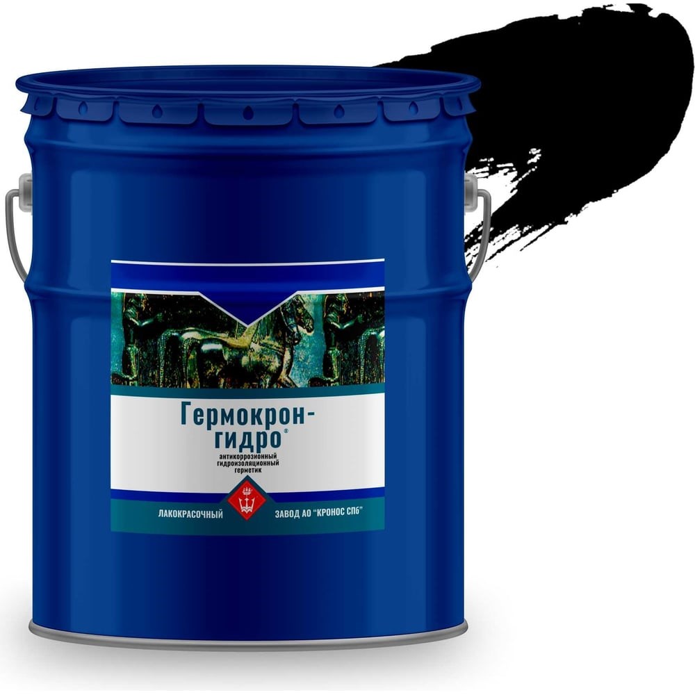 Герметик антикоррозионный Гермокрон-ГидроОднокомпонентный материал для комплексной антикоррозионной и гидроизоляционной защиты металлических и бетонных поверхностей. Предназначен для эксплуатации в условиях воздействия воды и агрессивных сред.Ключевые преимуществаСрок службы до 50 лет при правильном нанесении.Эффективно защищает от пресной и морской воды, сточных вод, кислот, щелочей, масел, нефтепродуктов и растворов солей. Устойчив к абразивному износу.Температура эксплуатации от -60°C до +90°C с возможностью кратковременного нагрева до +230°C.Относительное удлинение — не менее 400%. Покрытие растягивается без разрыва при деформациях и вибрациях основания.Технические характеристики:Основа: Каучуково-смолянаяНазначение: Для металла и бетонаТемпература эксплуатации: от -60°C до +90°CВремя высыхания: < 1 часа (при +20°C)Расход: ~300 г/м² на слой 100 мкмОбласть применения:Металлические конструкции: опоры мостов, трубопроводы, резервуары, портовые сооружения, подземные коммуникации.Бетонные и ж/б конструкции: фундаменты, тоннели, очистные сооружения, плотины.Промышленные объекты, подверженные воздействию агрессивных химических сред.Инструкция по применению:Очистка поверхности до степени Sa2,5 (металл) или St3 (бетон). Обеспыливание.Наносить можно: кистью, валиком, шпателем или безвоздушным распылением.Время межслойной сушки — не менее 1 часа (при температуре от +10°C до +45°C).Наносить не менее 2-х слоев. Ввод в эксплуатацию — через 4 суток после нанесения последнего слоя.