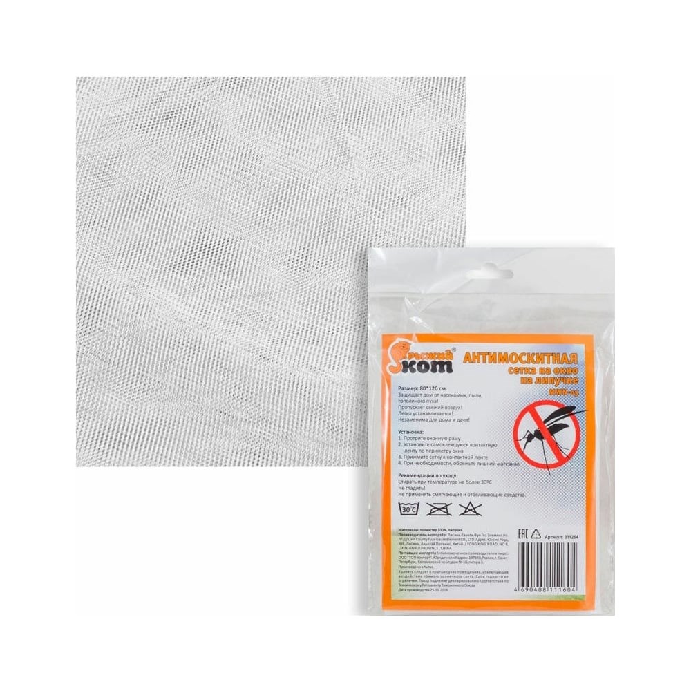 Антимоскитная сетка на окно Рыжий кот MWN-01, 80х120см 311262 предназначена для защиты от насекомых и пыли. Подходит для всех типов окон. Изготовлена из 100% полиэстера плотностью 25 гр/кв.м. Она износостойкая и прочная, что гарантирует долгий срок службы.