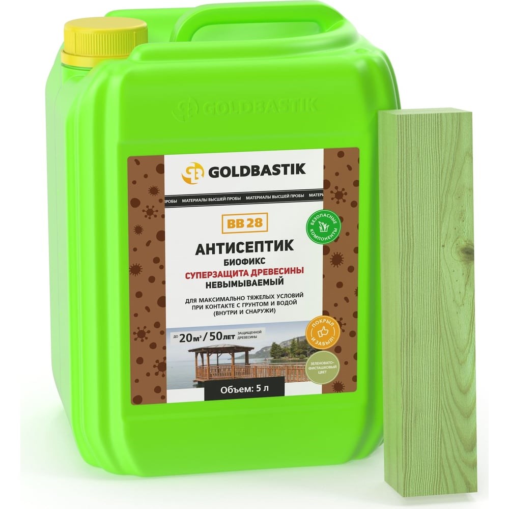 GOLDBASTIK BB 28 — профессиональный антисептик для защиты древесины от всех видов биопоражений. Состав используется для обработки в особо неблагоприятных условиях. После полного высыхания антисептик не вымывается при длительном воздействии атмосферных осадков, надежно защищает древесину при контакте с водой и грунтом. Используйте антисептик для защиты материала от глубоких и поверхностных поражений, гниения, плесени, синевы и насекомых в строительстве домов, хозяйственных построек, заборов, пирсов и так далее. Подходит для садовой мебели, кольев для садоводства, оград, заборов и столбов. Фисташковый цвет антисептика поможет не только защитить, но и украсить дом, террасу, беседку, забор, причал, лестницы, перила. Ключевые преимуществаНе вымывается из древесины.Глубоко проникает в древесину.Не содержит фтор, хром, мышьяк.Безопасен для животных, людей и растений.Останавливает уже существующие биопоражения древесины, предотвращает новые биопоражения.Не токсичен.Не вызывает коррозию металлических элементов крепежа.Может быть использован как защитная пропитка перед окрашиванием.Сохраняет текстуру дерева.Не выделяет запаха после высыхания.Не влияет на прочность и проницаемость древесины.