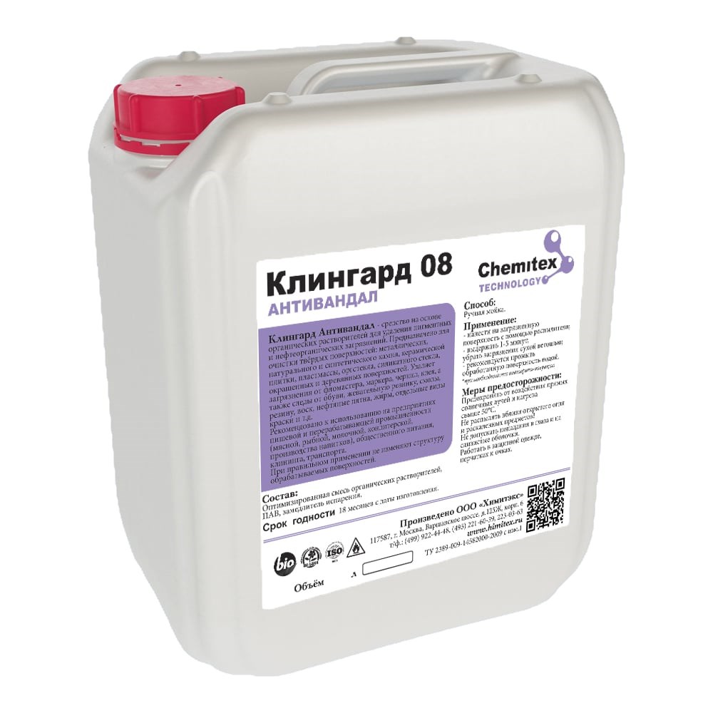 Антивандальное средство/антиграффити ХИМИТЭКС Клингард-08 предназначено для очистки твердых поверхностей от граффити различной природы, монтажной пены и герметиков. Эффективно удаляет маркер, чернила, гуталин.