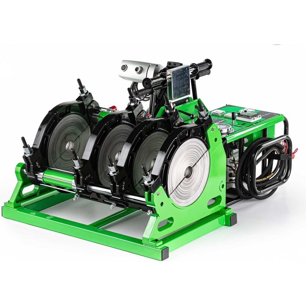 Стыковой сварочный аппарат с гидравлическим приводом ПРОСВАР С 315 применяется при проведении контактно-стыковой сварки газопровода, водопровода, канализации, теплотрассы и иных коммуникаций. Диаметр свариваемых полимерных труб может варьироваться от 40 до 315 мм. В комплектацию включен набор встраиваемых полуколец с крепежными болтами для пайки труб различного диаметра. Центратор имеет четыре металлических хомута, один из которых снимается для удобной сварки тройников, крестовин, отводов. Торцеватель с электродвигателем проводит высокоточную торцовку края соединительных деталей. Для безопасности пользователя на торцевателе предусмотрен микровыключатель. Поверхность нагревателя покрыта тефлоном, что предотвращает прилипания разогретого полимерного материала. Настройка температуры регулируется электронным коммутатором, расположенным на самой гидростанции. Открытый корпус гидростанции изготовлен по стандарту защиты IP 54.