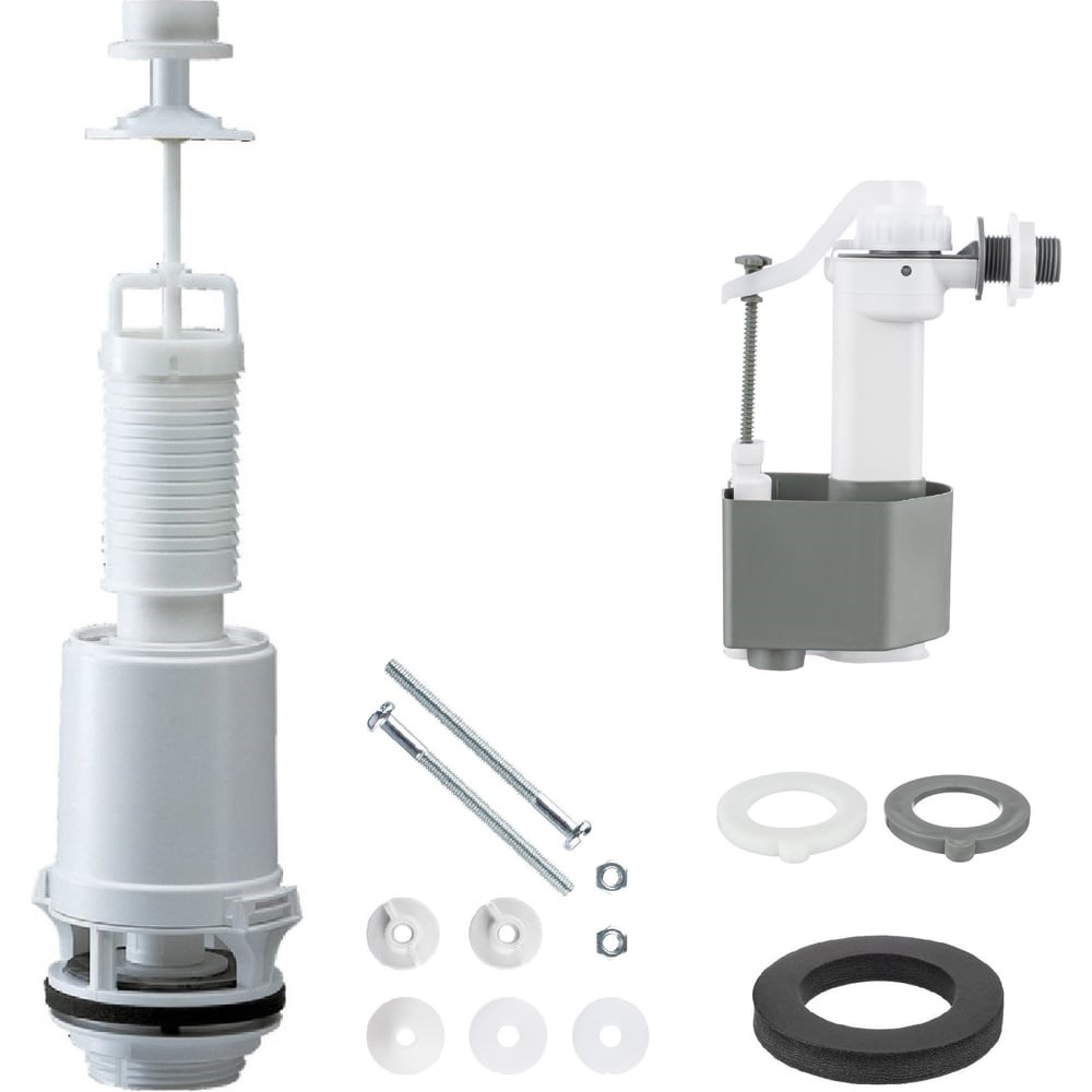 Клапан спускной CLASSIC 42B тяга вверхПодходит для бачков различной высоты: высота спускного клапана регулируется от 255мм до 455мм.Предназначен для бачков с диаметром отверстия в крышке от 10 до 42мм. и с отверстием в дне бачка диаметром от 58 до 72мм.Прокладка между спускным клапаном и дном бачка выполнена из литого эластомера СБС. Её эластичность и форма усиливают герметичность донной части бачка.Прокладка между бачком и унитазом изготовлена из пенорезины, позволяет компенсировать неровности полки унитаза.Клапан наполнительный BRIO 753 ½'Наполнительный клапан с боковым подключением ½’, пластиковый штуцерРегулируемый уровень набора водыГидравлическое закрытие (без гидравлического удара)Создан специально для воды с высоким содержанием примесейМалошумная работа: 19ДбПропускная способность 0,14 л/с под давлением 3 барРабочее давление от 0,5 до 12 бар