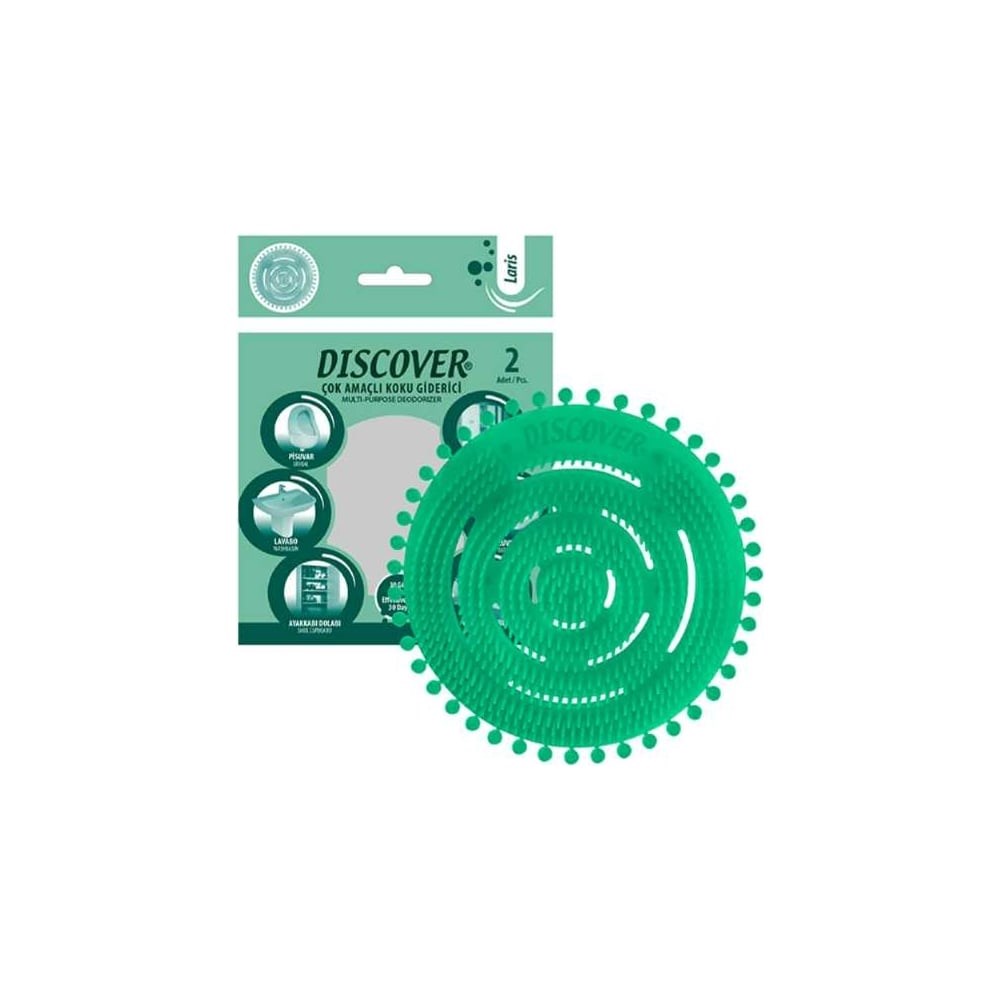 Ароматическая сетка для писсуара DISCOVER 2 шт, аромат Laris DSR 7381-3 - это эффективное средство устранения неприятного запаха, которое не только удаляет неприятный запах мочи, но и защищает писсуар от стороннего мусора.Сетка пропитана мощным ароматическим средством, которое рассчитано на срок использования до 30 дней.В качестве дополнительного применения, благодаря интенсивному запаху, его можно использовать в раковине, сливе в ванных, шкафах для обуви и пр.Аромат лотос, зеленые листовые ноты.