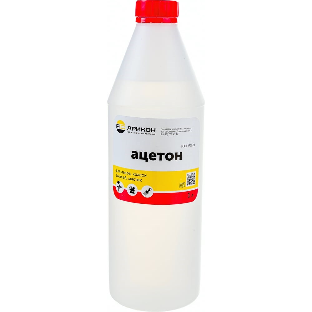 Ацетон Арикон флакон 1 л ACE1 получил распространение в быту благодаря возможности растворять нитролаки, нитрокраски и органические вещества, из-за чего с его помощью можно обезжирить как керамические поверхности, так и любые другие (металл, древесины, бетон). Большое количество вещества может разрушить волокна антицелюллозы и резины, а также помочь с устранением солевого налета. Также применяется для удаления следов монтажной полиуретановой пены, очистки инструмента.