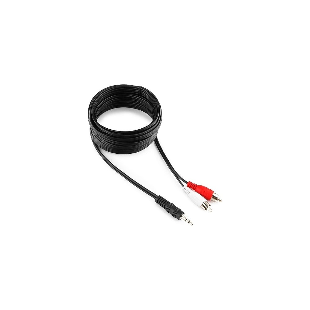 Кабель для соединения аудиовходов/выходов различных устройств (звуковых адаптеров компьютеров, бытовой аудиоаппаратуры и др.). Двухпроводная конструкция, изоляция из поливинилхлорида. Технические характеристики Разъёмы на кабеле: стереофонический mini jack 3.5 миллиметра [папа] (для аудиовхода/выхода одного звуковоспроизводящего устройства) два композитных RCA (тюльпана) [папа] (для аудиовхода/выхода другого звуковоспроизводящего устройства) Длина кабеля – 5 м