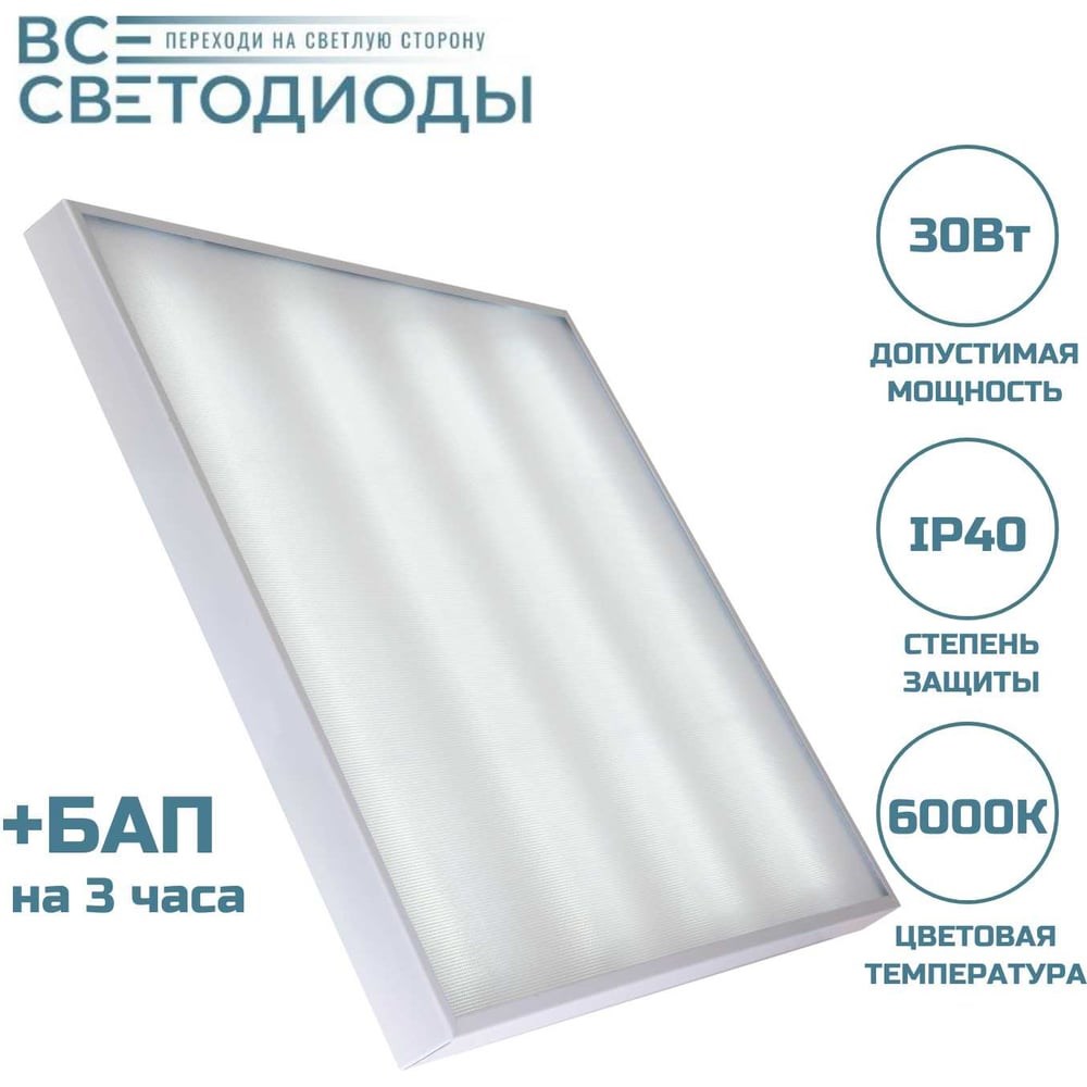 Аварийный потолочный светодиодный светильник ВСЕСВЕТОДИОДЫ Армстронг 30 Вт, 3600Lm, 6000К, IP40, Микропризма, БАП на 3 часа