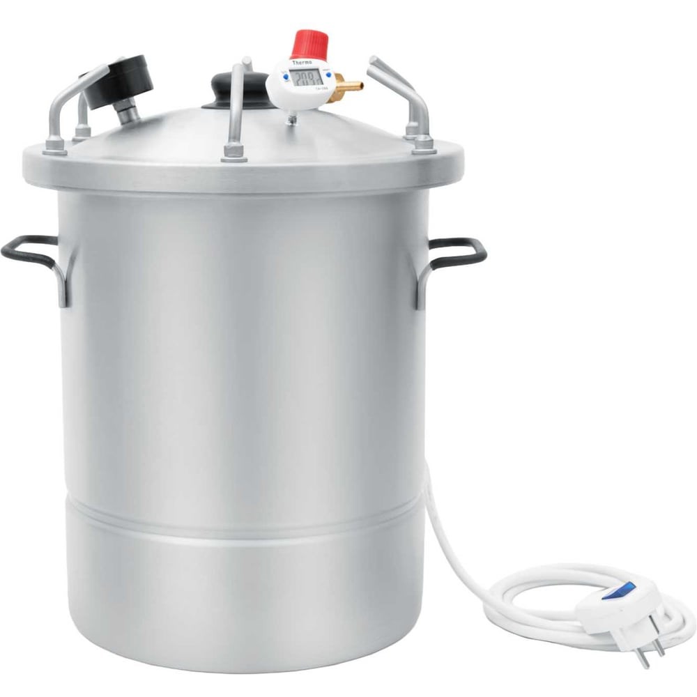 С автоклавомдля домашнего консервирования «Булат»вы сможете готовить полезную пищу на месяцы вперёд. Полезную, потому что в автоклаве продукты почти не теряют влагу, а значит сохраняют полезные вещества: витамины, минералы и соли. На месяцы, потому что под давлением продукты консервируются без пищевых добавок, надолго сохраняя вкус и пользу. Вместимость: 14 банок по 0,5 л 7 банок по 0,65 л 5 банок по 0,8 л 4 банки по 1 л Преимущества автоклава: Большой объем и компактность. Можно готовить в одном из двух режимов: на воде или пару. Контроль над безопасностью: В расположенных по диаметр уг-образных винтов надёжно фиксируют крышку автоклава. Благодаря цельной выгнутой форме винты удобнее закручивать, опираясь сразу несколькими пальцами. Автоклав создаётся из нержавеющей стали AISI 304, которую используют в медицинской и пищевой промышленностях. Автоклав работает на всех видах плит: газовые, индукционные, электрические, стеклокерамические. Фальшдно автоклава служит подставкой под банки с продуктами. С ним ёмкости расставляются ровно и при этом не касаются элементов питания — это позволяет достичь постоянной температуры воздействия на них.