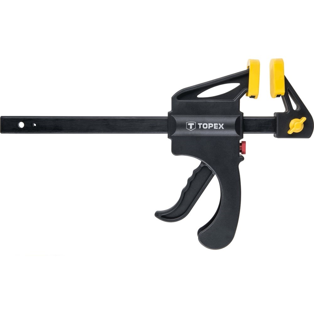 Автоматическая струбцина TOPEX 12A575 является универсальным инструментом, может использоваться в качестве скобы или опоры. Найдется применение как для выполнения профессиональных работ, так и при мелких строительных и ремонтных работах. Рукоятка пистолетного типа изготовлена из высококачественной пластмассы, ее специальная форма обеспечивает комфортное использование. Дополнительно оснащена системой быстрого перемещения, благодаря ей работа становится более эффективной. Имеет сертификаты надежности TÜV, GS.