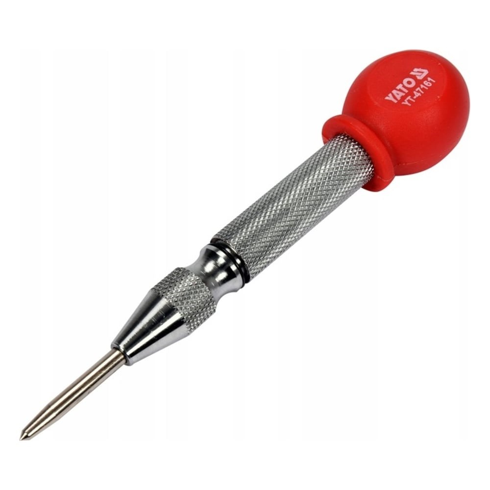 Автоматический кернер YATO YT-47161 предназначен для быстрой и точной маркировки точек на поверхности обрабатываемого материала, например, дерева, металла или пластика. Чаще всего используется для отметки точки перед началом сверления. Так называемой насечки облегчают начало сверления, ограничивая неблагоприятное воздействие сверла, перемещающегося по поверхности материала. Выбор производится, когда острый конец пуансона касается материала. Традиционный метод подсчета очков требует использования молотка. Представленные автоматические штампы маркируют материал благодаря использованию сильной внутренней пружины, которая перемещает иглы из закаленной стали. Таким образом, они избавляют от необходимости носить с собой тяжелый молоток. Пуансон не требует растяжения пружины - это делается автоматически. Сразу после прижатия иглы к материалу и удара мы можем повторить действие, отметив другую точку. Пробойник имеет регулируемую силу удара, используемую для оптимального соответствия твердости маркируемого материала.