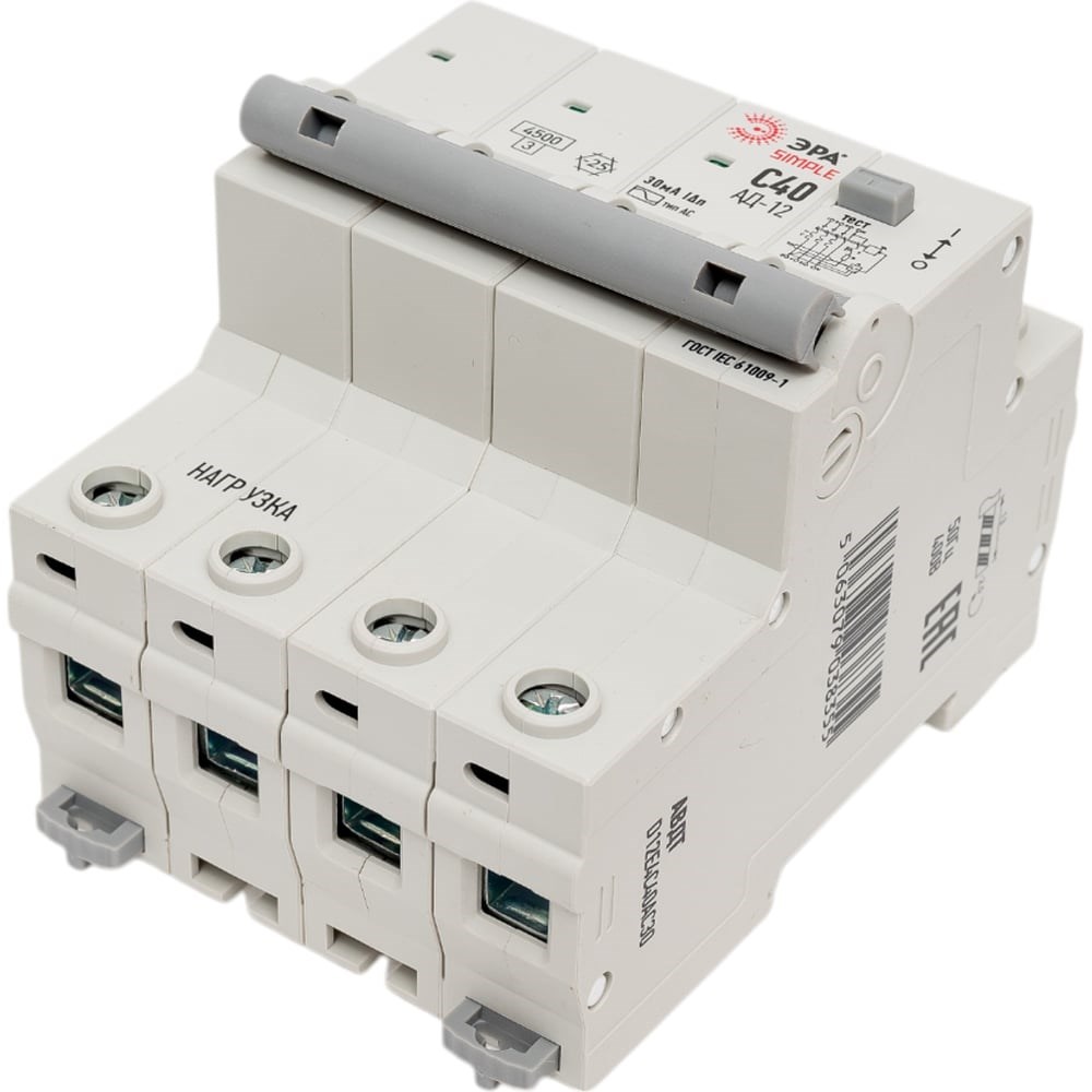 Автоматический выключатель дифференциального тока ЭРА АВДТ 4,5кА SIMPLE D12E4C40AC30 АД12 электронное 3PN С40 30мА тип АС