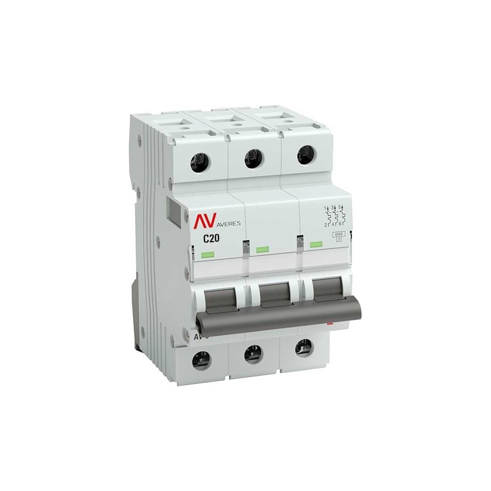 Автоматический выключатель EKF AV-6, 3P, 20A, 6kA, AVERES mcb6-3-20C-av