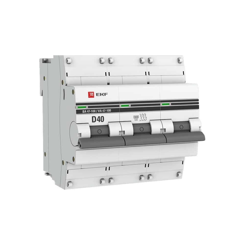 Автоматический выключатель EKF, 3P, 40А, 10kA, ВА 47-100, PROxima mcb47100-3-40D-pro
