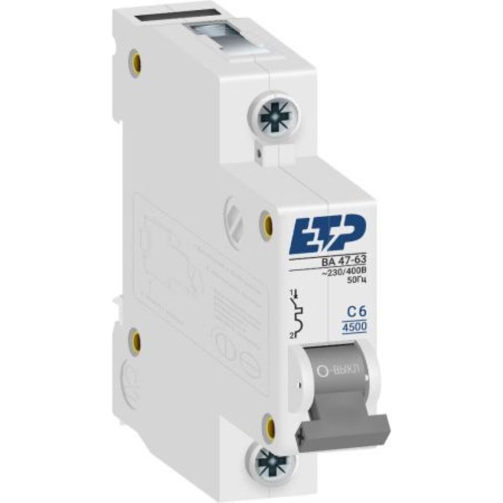 Автоматический выключатель ETP 1P 6А тип C 4,5 кА 11111 является механическим коммутационным аппаратом. Применяется в административных, промышленных и жилых сооружениях для проведения тока в нормальном режиме и оперативного управления участками электрических цепей. Служат в качестве основного элемента системы конечного распределения и выполняют защиту установок от перегрузок, коротких замыканий и сверхтоков, обеспечивая их надежную и безопасную эксплуатацию. Автоматические выключатели серии ВА 47-63 ETP оборудованы удобной ручкой управления, обеспечивающей безотказное оперирование изделиями. На лицевой панели выключателей имеется цветовой индикатор состояния. Конструкция установочного зажима облегчает установку выключателя на DIN-рейку.