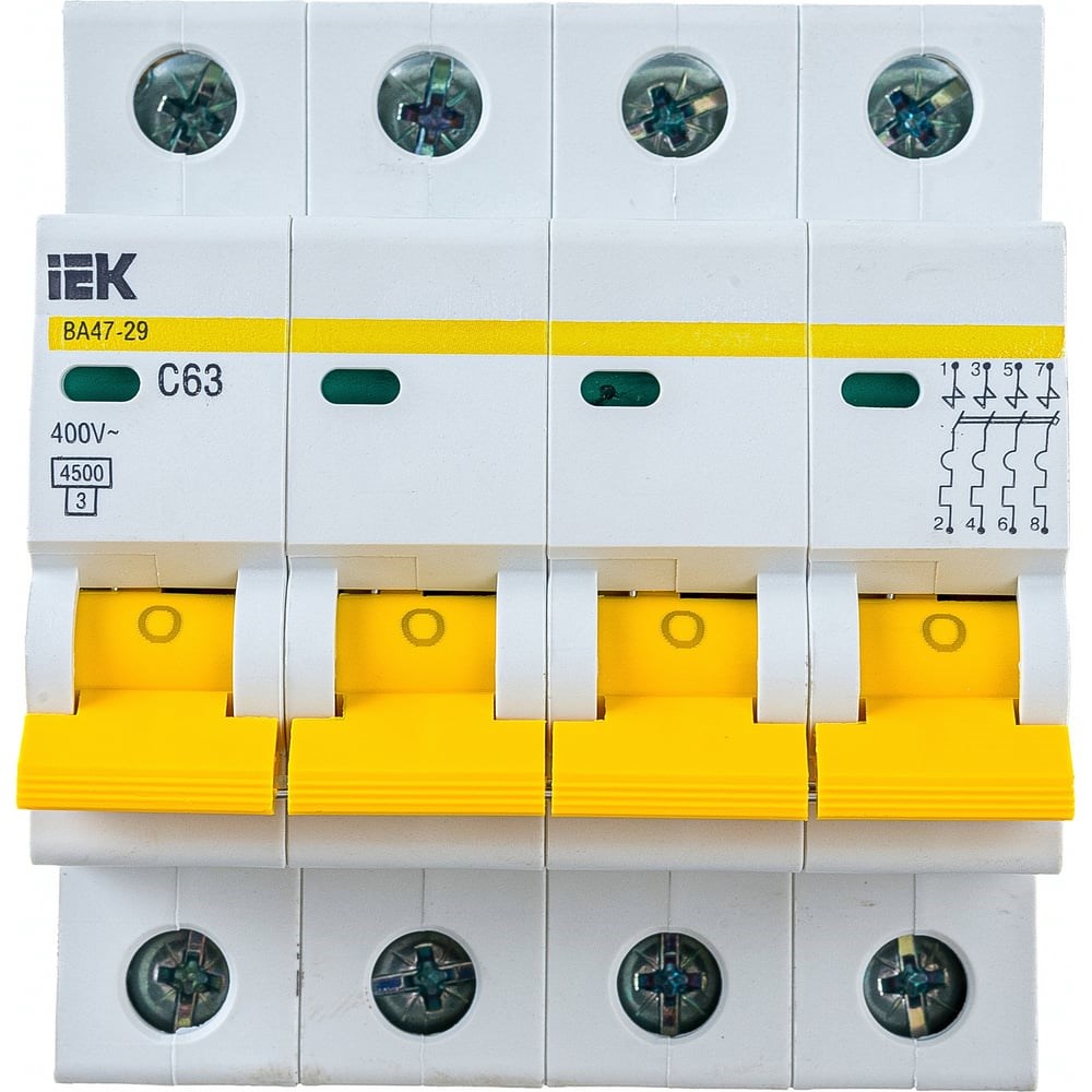 Автоматический модульный выключатель IEK 4п C 63А ВА 47-29 4.5кА ИЭК MVA20-4-063-C