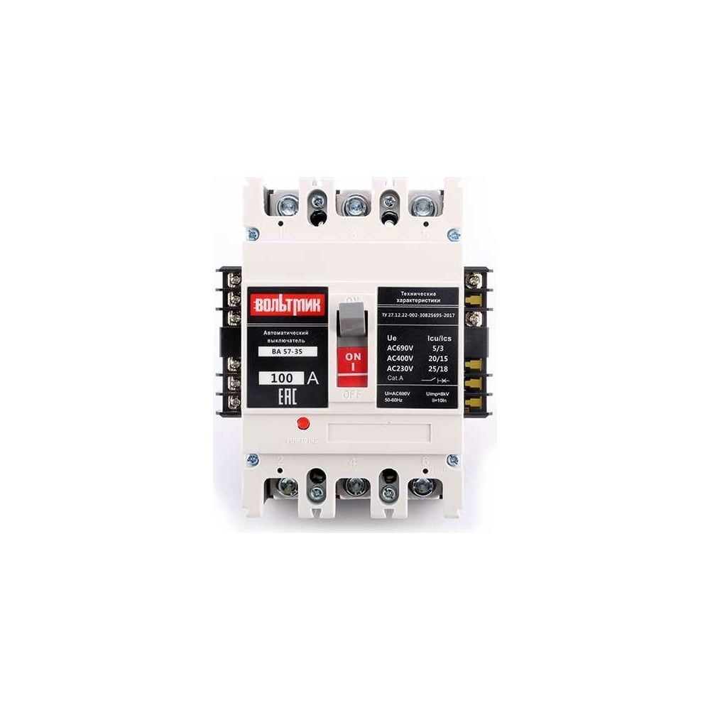 Автоматический выключатель ВТМ (S) ВА 57-35 341810 100А 1000 (НР-380АС) ВТМ00032654 обладает небольшими и компактными размерами, высокой отключающей способностью, коротким расстоянием между дугами, защитой от вибрации. Он применяется в электрических цепях переменного тока частотой 50 Гц. Его можно использовать для распределения электроэнергии, защиты силового оборудования от перегрузки, короткого замыкания, пониженного напряжения, нечастого запуска двигателя и т.д. Автоматический выключатель имеет возможность вертикальной или горизонтальной установки. Поставляется с прозрачной крышкой, что позволяет клиенту наблюдать за его работой.