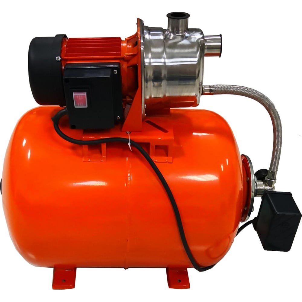 Вихрь АСВ 1200/50Н – модель автономной станции водоснабжения, оснащена электронасосом, гидроаккумулятором и реле давления, составляющих единую конструкцию, и служит для подачи воды в автоматическом режиме. При уменьшении давления до 1.5 бар агрегат включается, а при повышении до 3 бар – выключается. Таким образом, благодаря автономной насосной станции, осуществляется водозабор и поддержание постоянного напора в системе.Мощность модели Вихрь АСВ 1200/50Н – 1200Вт. Объём подаваемой воды – до 70 л/мин. Напор – до 40м. Перекачиваемая вода должна быть чистой – без грязи, песка и других абразивных частиц. Их концентрация не должна быть выше 150г/м³. Ёмкость гидроаккумулятора этой модели составляет 50 л. В станции используется поверхностный насос, обеспечивающий глубину всасывания до 9м. Насосная часть электродвигателя изготовлена из нержавеющей стали. Электропитание станции осуществляется от сети 220В/50Гц.
