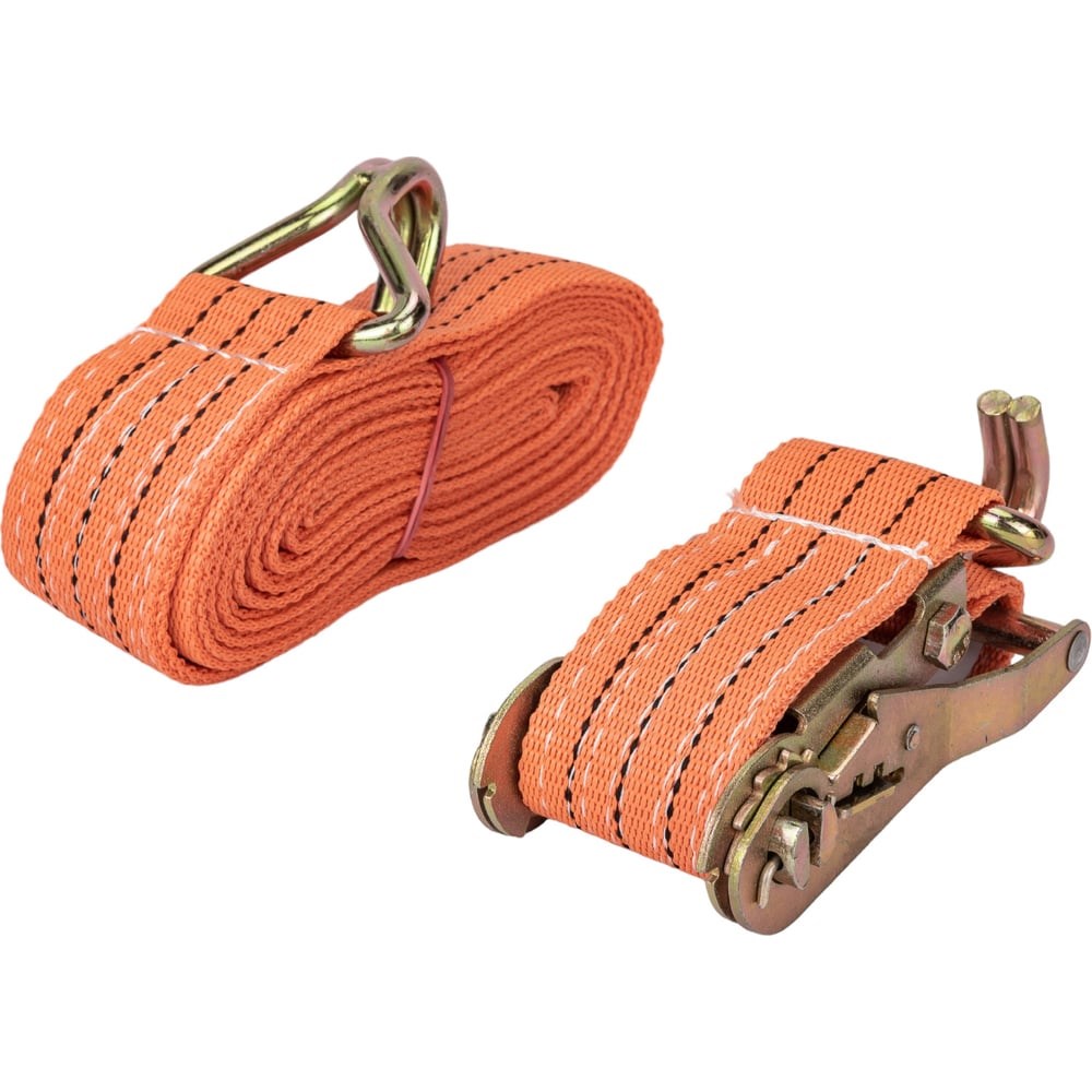 Багажный ремень с крюками Stels 54385 шириной 5 см и длиной 6 м, с храповым механизмом, предназначен для фиксации грузов на решетчатых конструкциях, например, открытых автомобильных багажниках, а также в прицепах. Предельная нагрузка составляет 800 кг, что обеспечивает сохранность багажа во время маневров на дороге. Ремень весит 1,069 кг и в сложенном виде очень компактен, поэтому его удобно хранить.