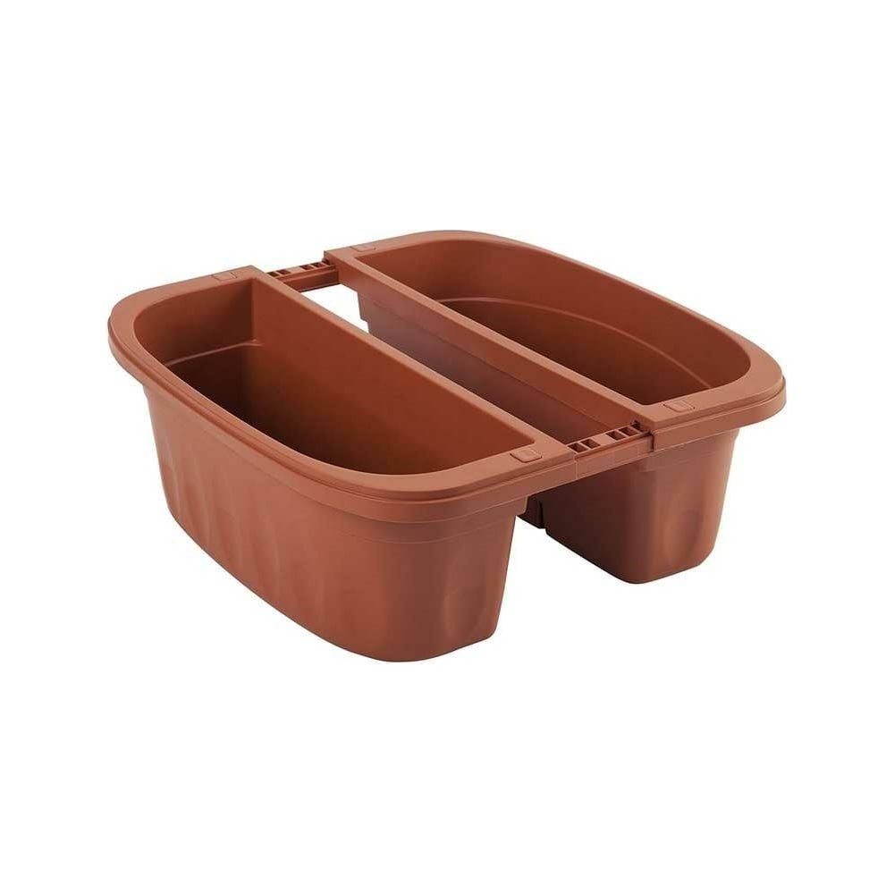 Комплект из двух балконных ящиков с креплением на перила Bama Spa Klunia 30235 053178 изготовлен из прочного пластика, устойчивого к негативному влиянию окружающей среды, что обеспечивает продолжительный срок службы. Благодаря специальному креплению горшок удобно размещать в подвешенном состоянии. Обладает сдержанным дизайном, благодаря чему отлично подчеркнет красоту любого растения.