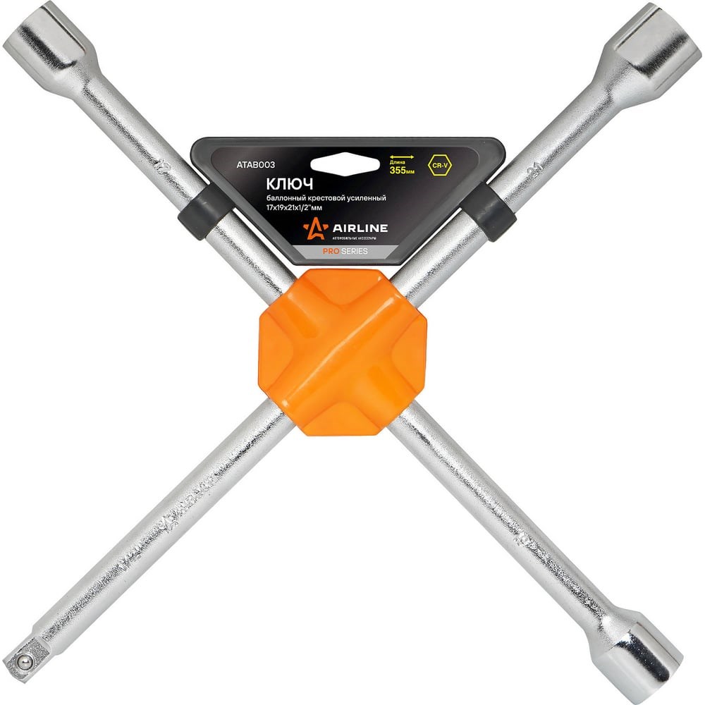 Баллонный крестовой усиленный ключ Airline PRO 17x19x21x1/2", 355 мм ATAB003 изготовлен из хромованадиевой стали. Артикул: ATAB003 Состав: металл Размер: 17x19x21x1/2" Длина: 355мм