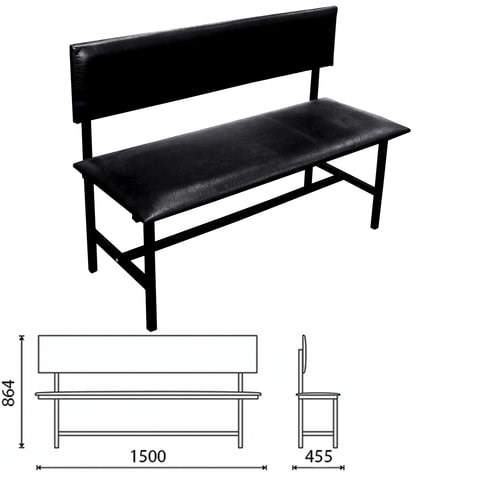 Банкетка со спинкой "Берта" 1500х455х864 мм, усиленная, черный каркас, кожзам черный