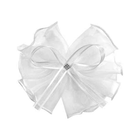 Бант из полиэстера с тремя вариантами размеров (8?10 см, 10?12 см, 8 см) — идеальный аксессуар для создания объемных причесок. Мягкая резинка обеспечивает комфортную фиксацию без повреждения волос, а белый цвет подчеркивает элегантность.