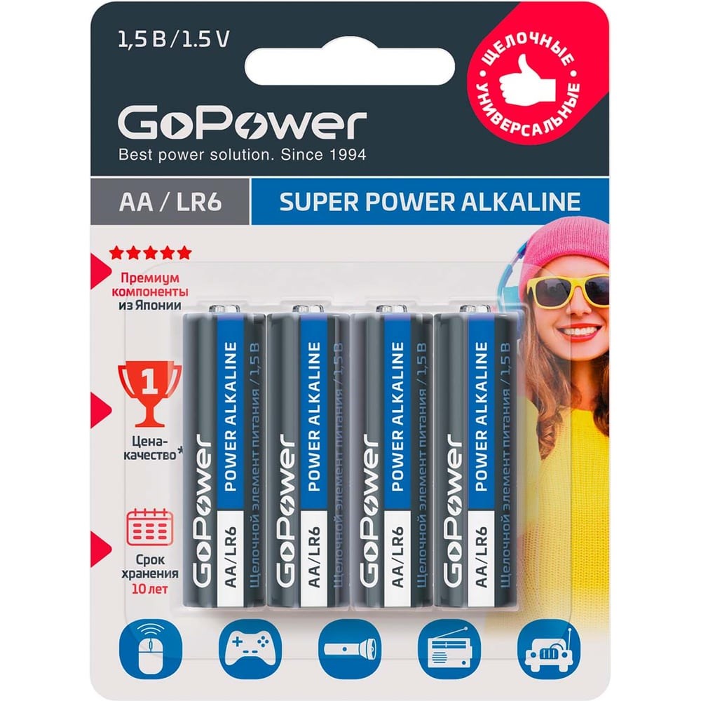 Батарейка GoPower LR6 AA BL4 Alkaline 1.5V 00-00015601 универсального назначения, она идеально подходит для большинства современных устройств. Благодаря улучшенной формуле этот элемент питания работает дольше.