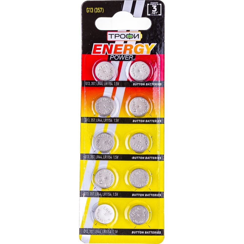 Батарейки Трофи G13 LR1154, LR44 ENERGY POWER Button Cell, C0034935